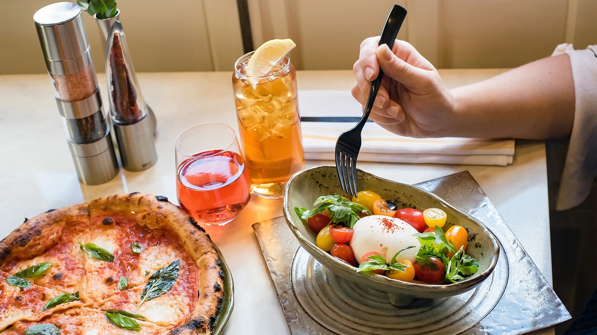 Watch from your table as our skilled culinary experts hand-stretch dough, layer premium ingredients, and masterfully fire each dish in our signature wood-fired oven in an open kitchen. Serving up bold experiences with a delightfully crispy finish is our specialty.