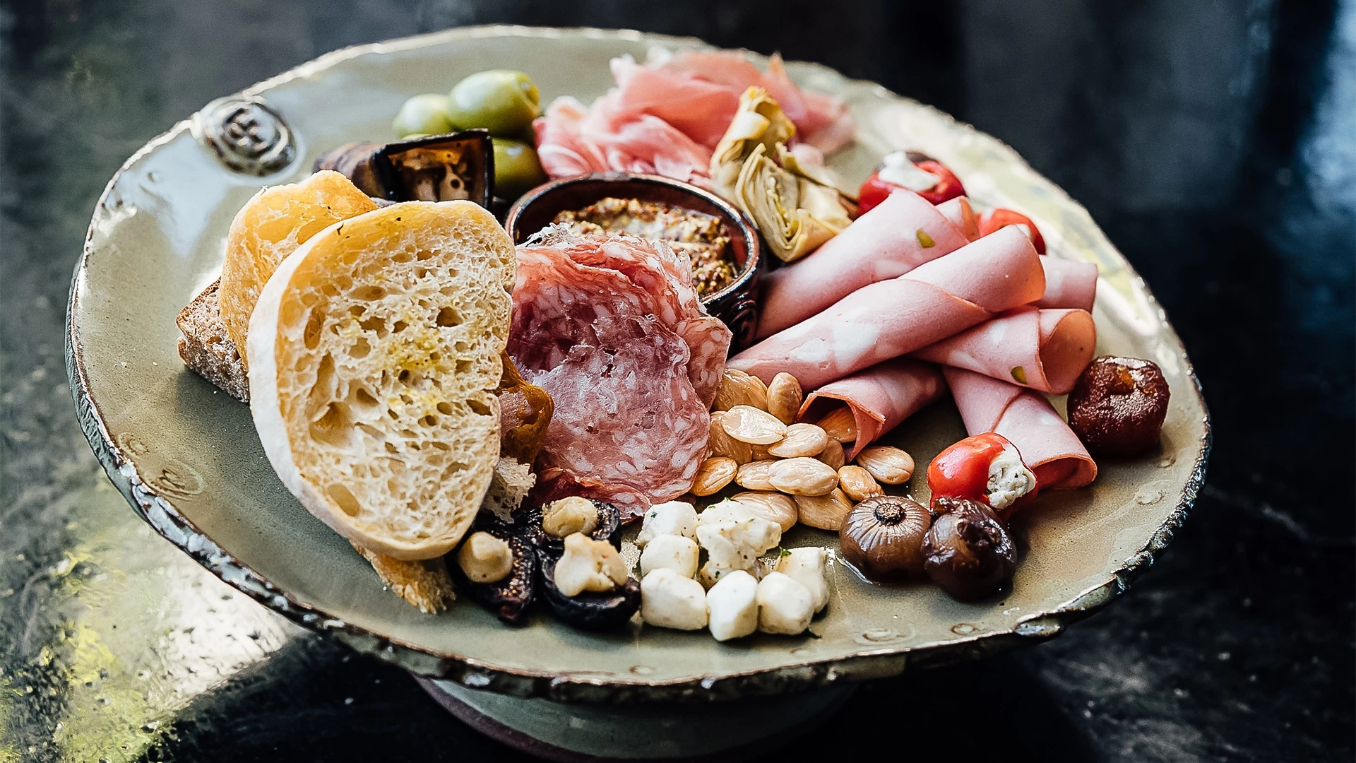 in HighlandsThe first night we arrived in Highlands, we went to Four65 for a drink and an appetizer. The charcuterie board was over the top! You choose three items, and they fill in the rest with olives and 3 types of bread. Almost a meal. We had reservations somewhere else for dinner, but decided to come back the next night.